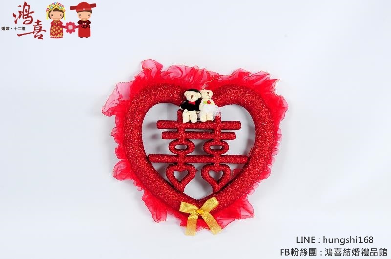 結婚時用囍字愛心造形象徵喜事漣漣,新人永結同心,可新房佈置、客廳、婚禮會場佈置、、、