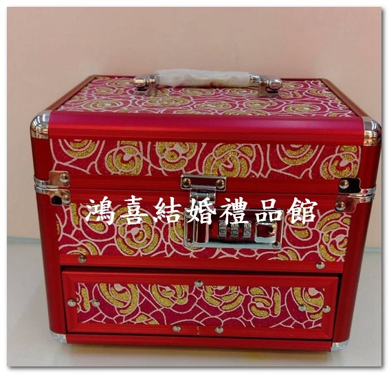 男方文定十二禮之一,需準備一個化妝箱象徵代表新娘財庫,裡面放"化妝箱禮"包含...緣粉2包.椪粉2盒.珠針新娘花1對.紅絲線2條(又名姻緣線,綁在同心戒子上).紅絲巾2條(一條綁在扇子上.一條綁新娘捧花)送至女方家下聘!結婚時要代金銀財寶進男方家門,代表財富滿滿